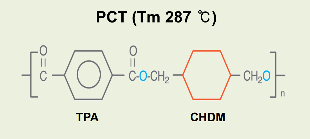 *高熔点:由于链刚性和高结晶度,PCT的熔点较高(约290°C)。