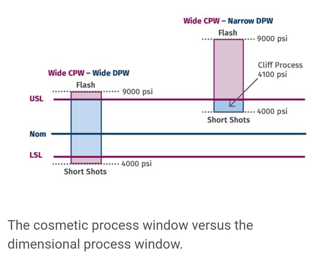 对于 4000 到 9000 psi 的 CPW,如果满足所需尺寸所需的最小注塑压力是4100 psi,那么该工艺现在就处于悬崖边缘(图 4)。如果压力增加,