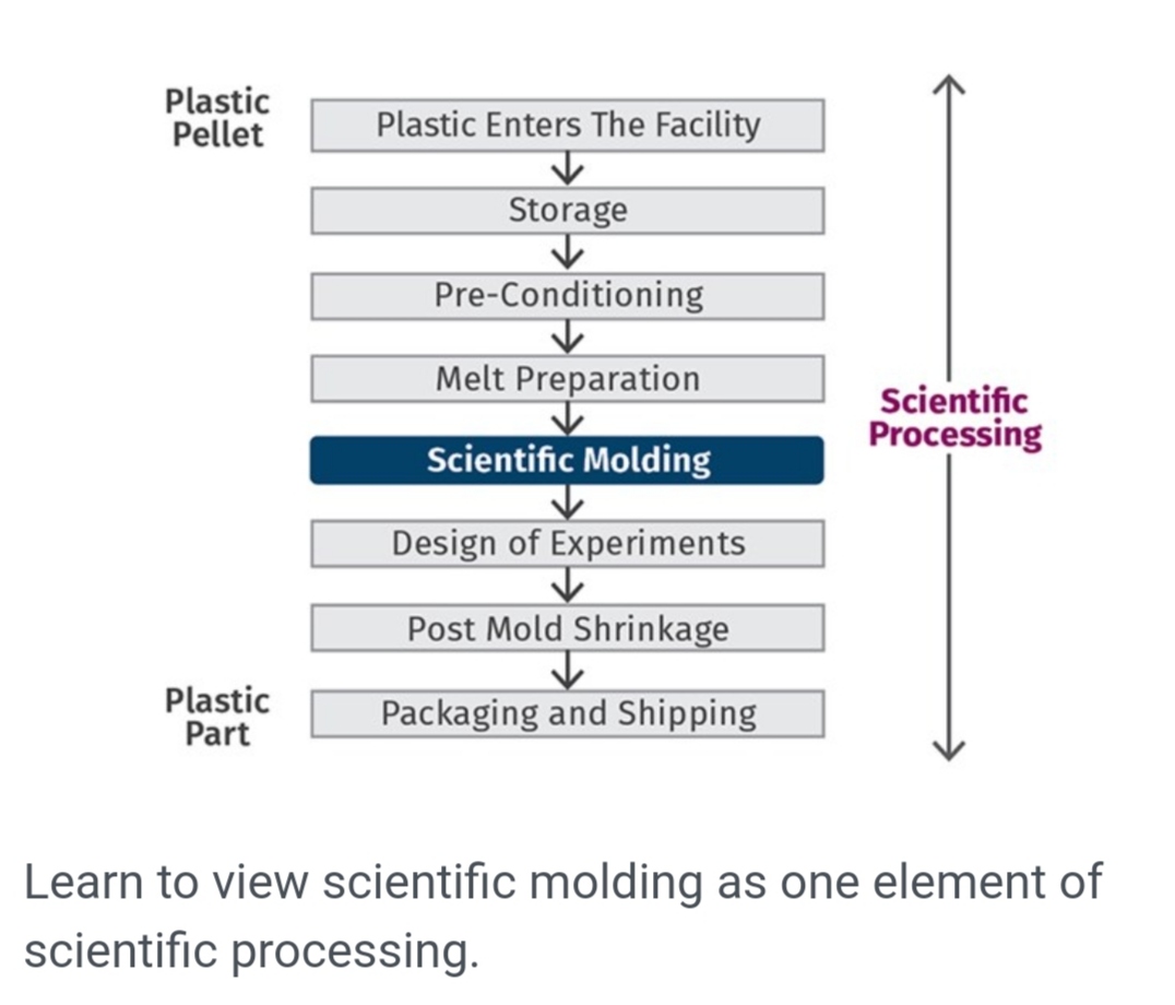 我更喜欢使用"科学加工"这个术语,因为工艺从塑料颗粒进入注塑车间开始,然后储存、干燥、加工成零件,经历模后收缩,最后打包运出