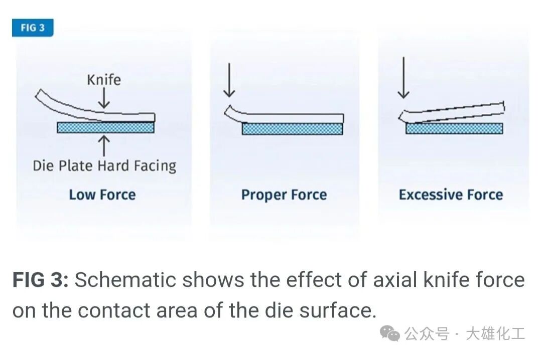 粒料拖尾和细粉是造粒过程中最常见的问题,是由于切割不良造成的,而切割不良可能是由于刀片未与模板硬质覆层充分接触所致。这会导致