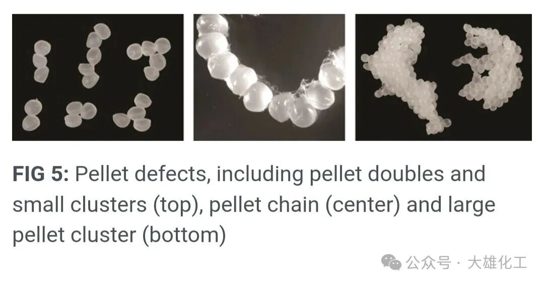 粒料连粒、并粒和结块是常见的缺陷,即粒料被整齐切割但彼此粘连在一起(见图 5)。