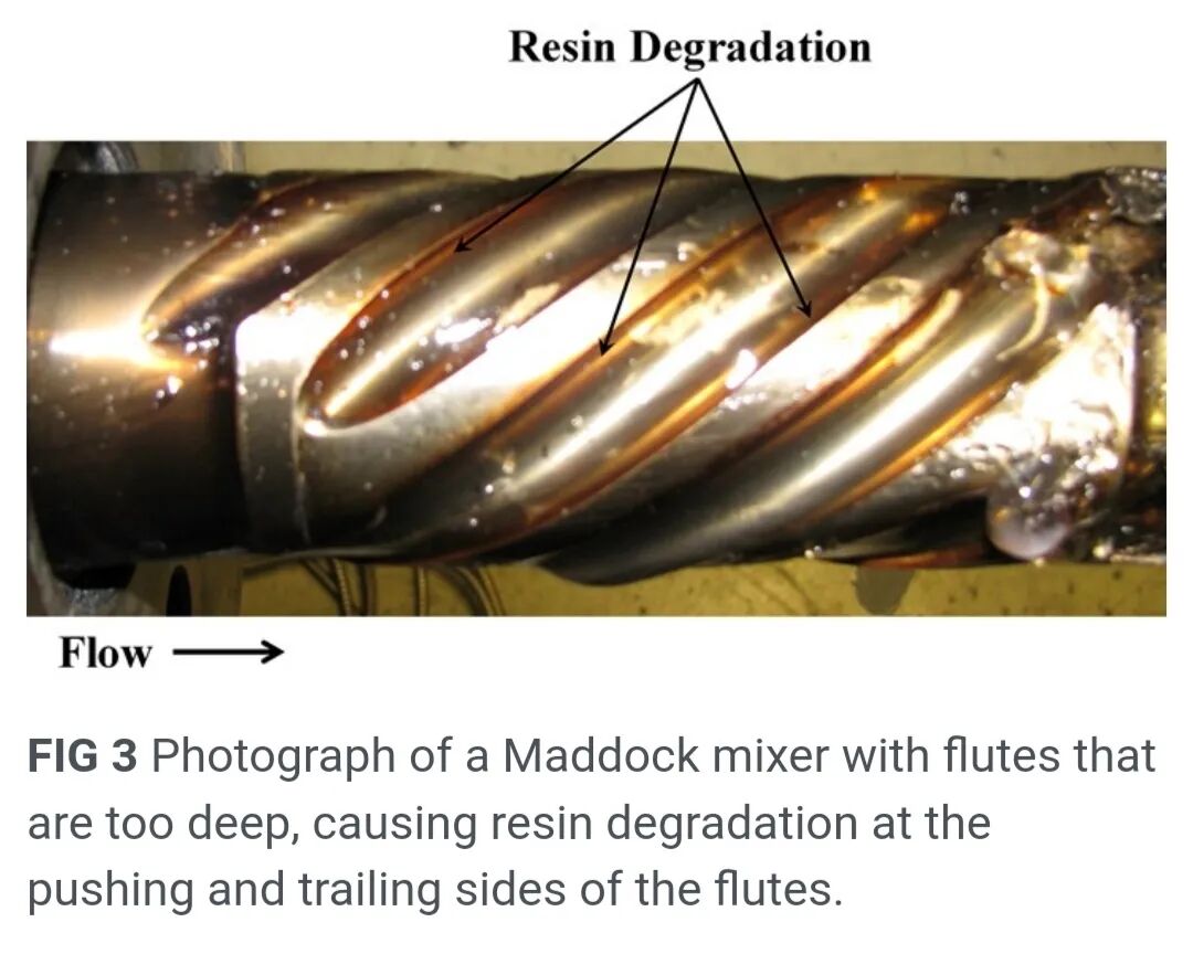 然而,许多商业上使用的Maddock混合器所能提供的分散剪切应力水平低于工艺要求。此外,设计不良的混合器可能导致树脂降解,降解的树脂最终会污染产品,尤其是在缺陷易于观察的薄膜产品中。